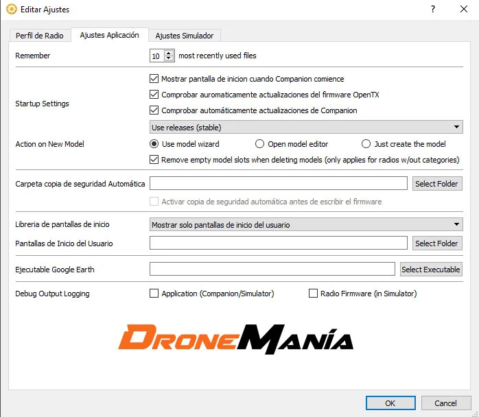 El requisito previo para actualizar es instalar un software para comunicar el PC con la emisora, y este se llama OpenTX Companion , el cual puedes descargar desde este enlace.